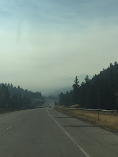 Here are a few random pictures of our drive today. The amount of smoke varies as we drove closer to, and then passed the multiple fires.